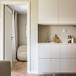 Det finns soffa, arbetsbord och te/kaffebryggare samt ett komplett kök utrustat med vattenkokare, kylskåp och glas. Lägenheten består av 1 sovrum och 1 badrum med separat toalett och dusch.